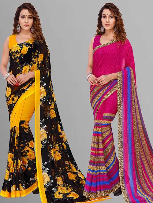 women pack of 2 casual wear combo saree with blouse - 21432952 - Very Small Image - 1