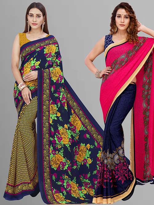 women pack of 2 casual wear combo saree with blouse - 21432970 - Very Small Image - 1