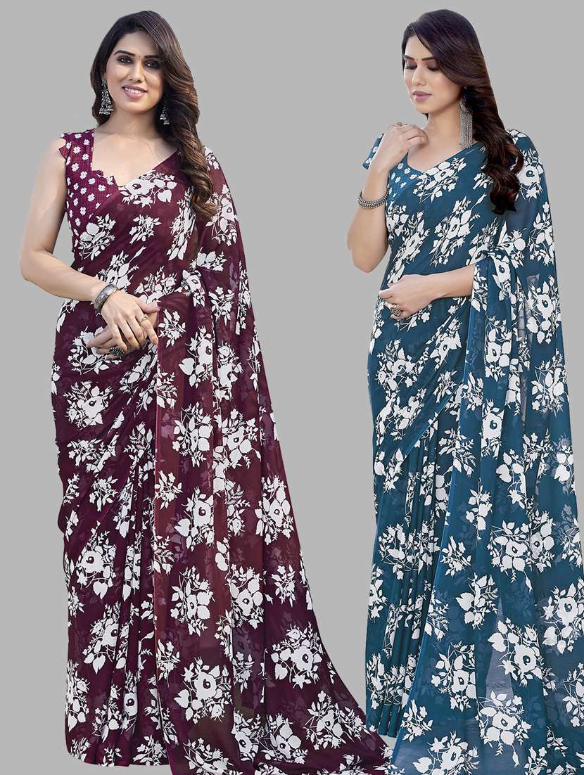 women pack of 2 casual wear sarees with blouse