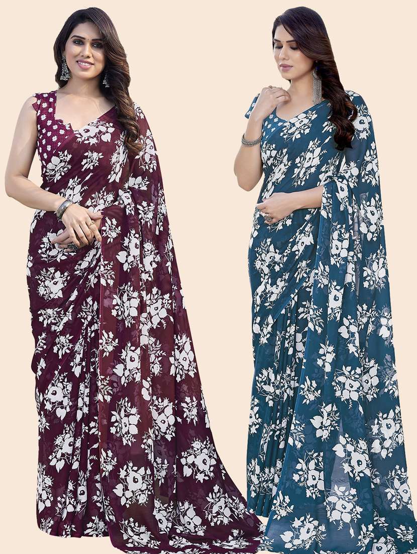 women pack of 2 casual wear sarees with blouse - 21433525 - Very Small Image - 1