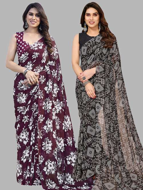 women pack of 2 casual wear sarees with blouse - 21433573 - Very Small Image - 1