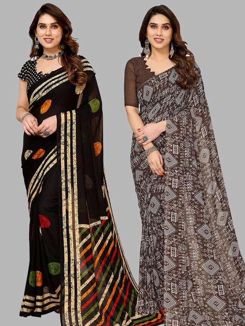 women pack of 2 casual wear combo sarees with blouse