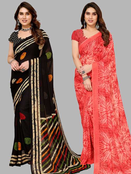 women pack of 2 casual wear combo sarees with blouse