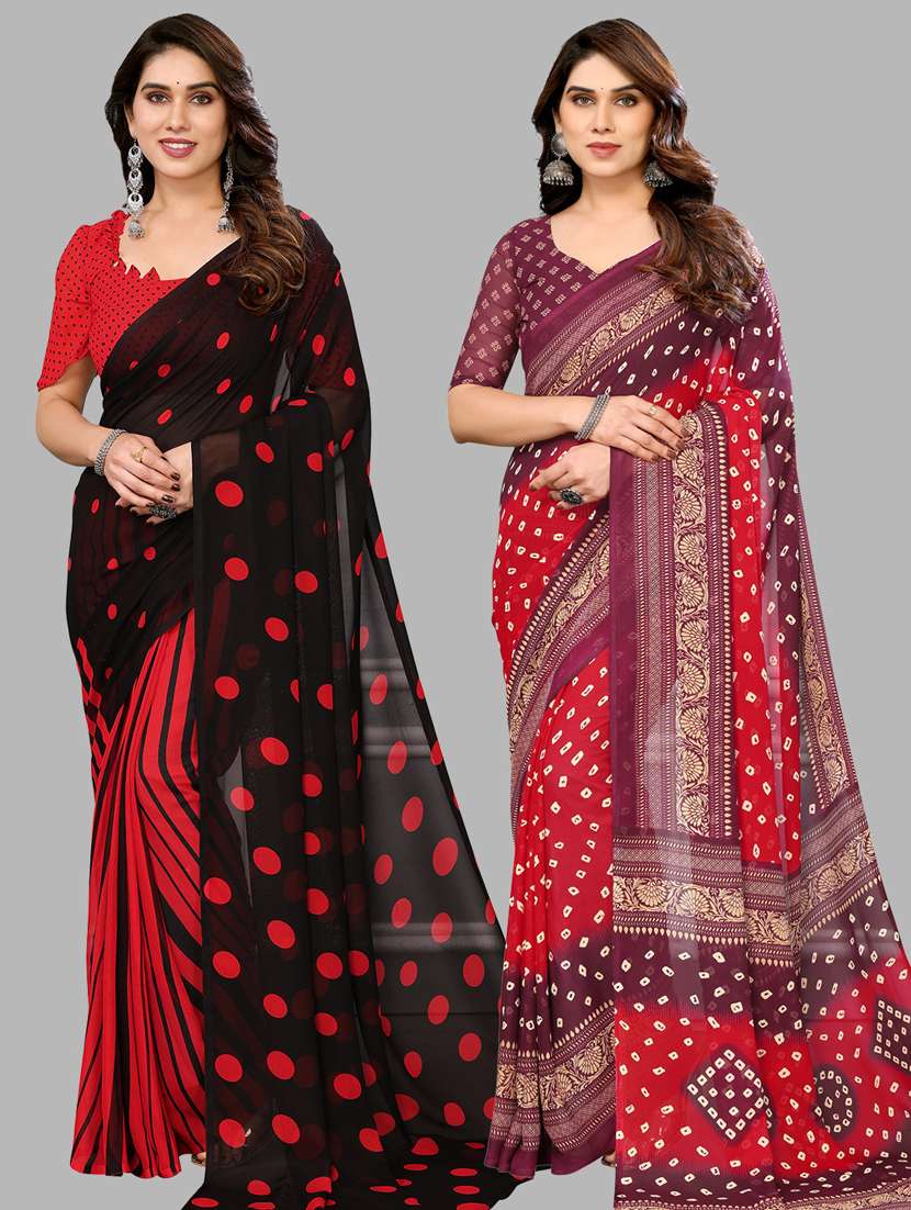 women pack of 2 casual wear combo sarees with blouse