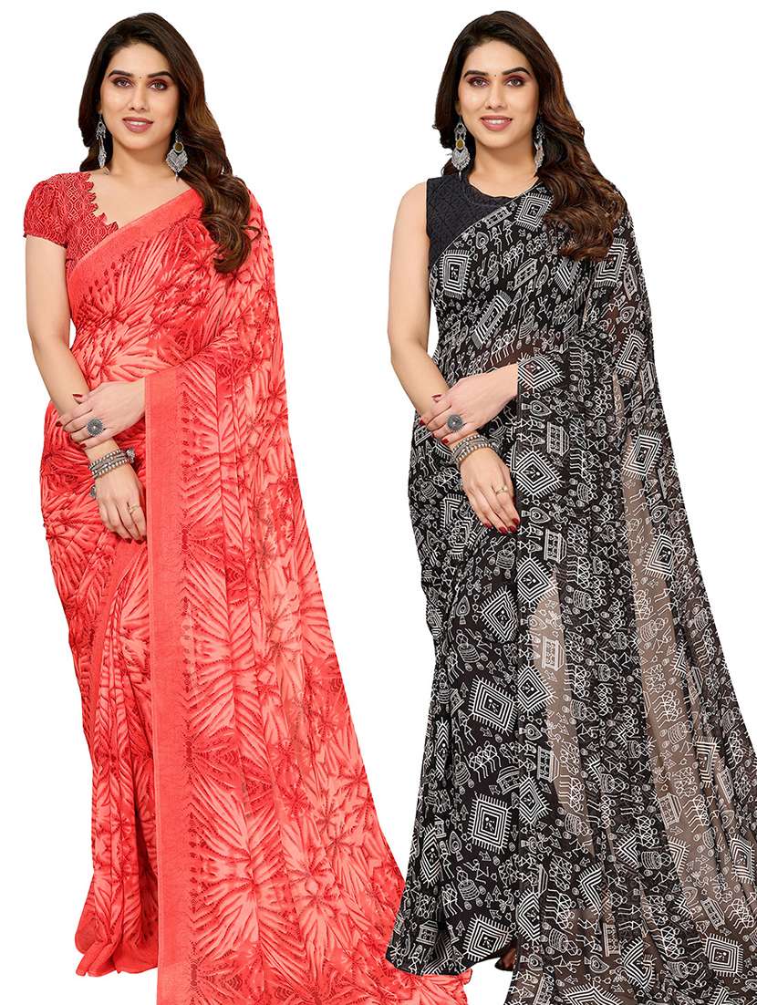 women pack of 2 casual wear combo saree with blouse