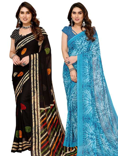 women pack of 2 casual wear combo sarees with blouse