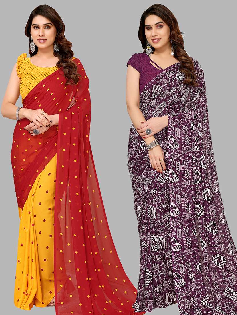 pack of 2 casual wear sarees with blouse - 21433877 - Very Small Image - 1