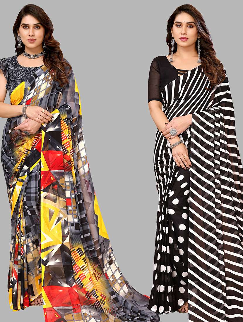 women pack of 2 casual wear sarees with blouse - 21433936 - Very Small Image - 1