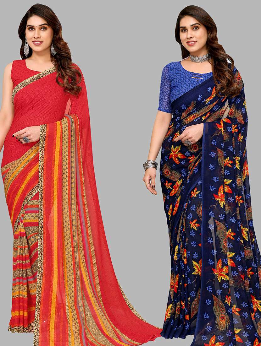 women pack of 2 casual wear sarees with blouse - 21433974 - Very Small Image - 1