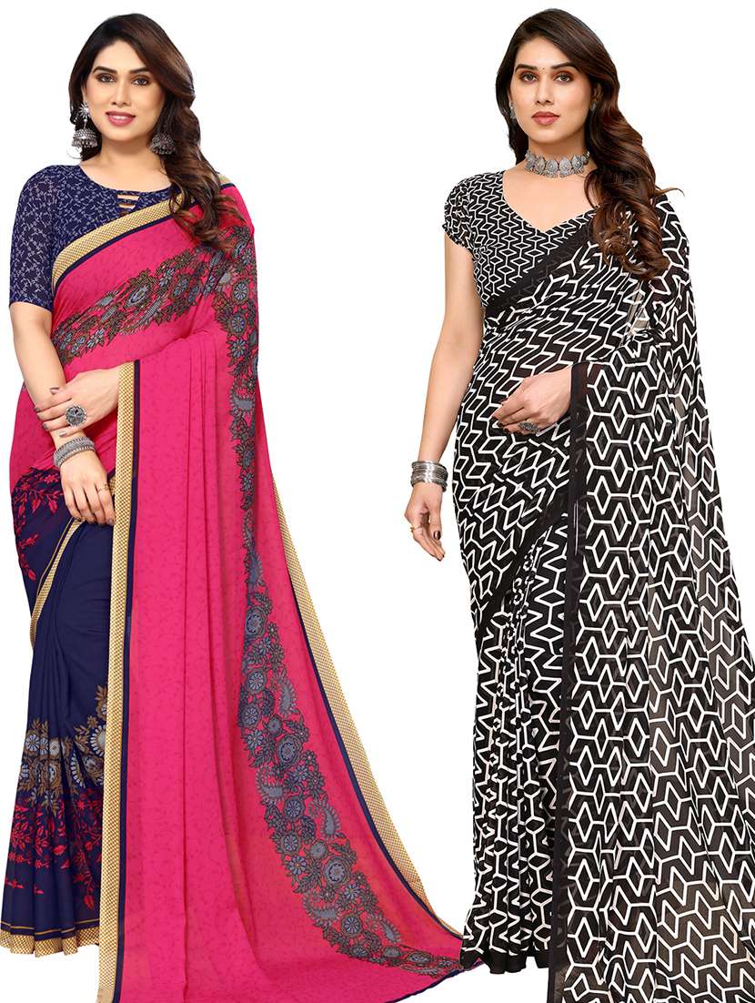 women pack of 2 casual wear sarees with blouse