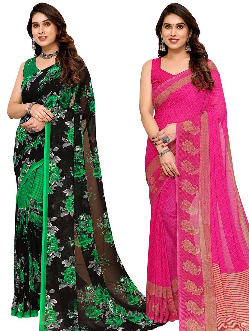 women pack of 2 casual wear sarees with blouse - 21434080 - Very Small Image - 1