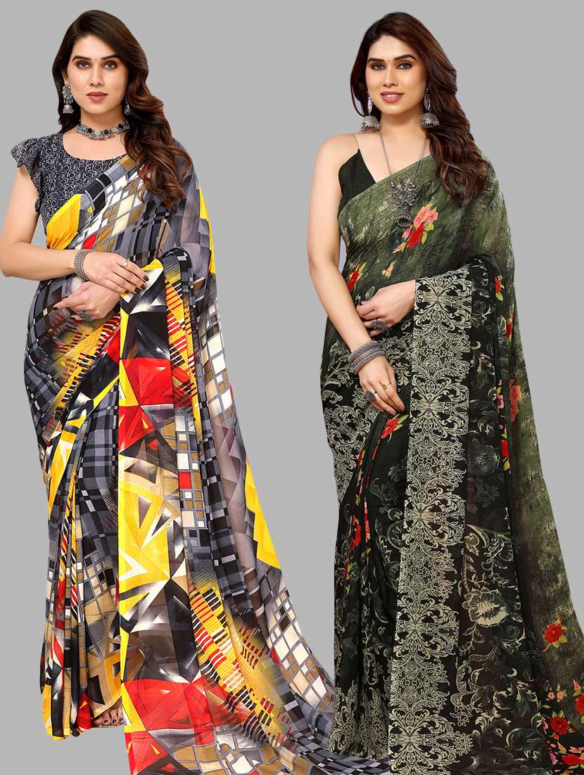 women pack of 2 casual wear sarees with blouse