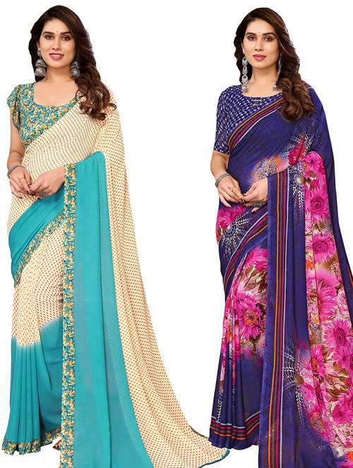 women pack of 2 casual wear combo sarees with blouse