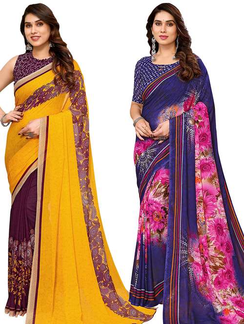 women pack of 2 casual wear combo sarees with blouse - 21434157 - Very Small Image - 1