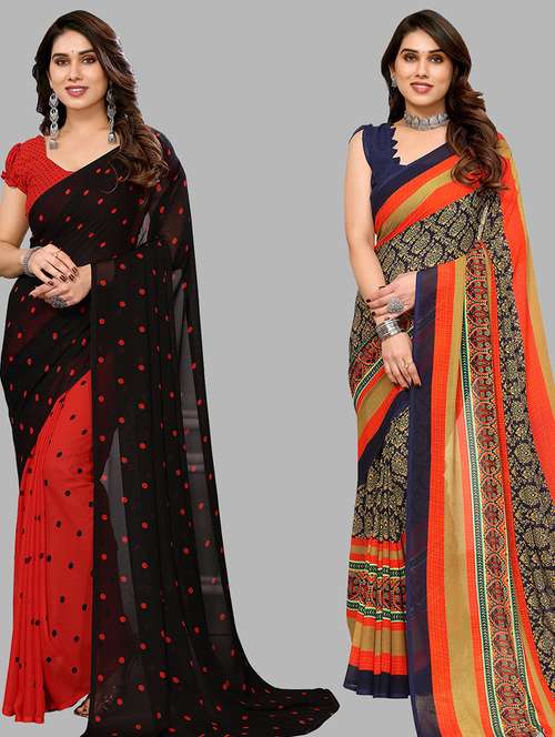 multi colored georgette combo saree with blouse - 21434174 - Very Small Image - 1