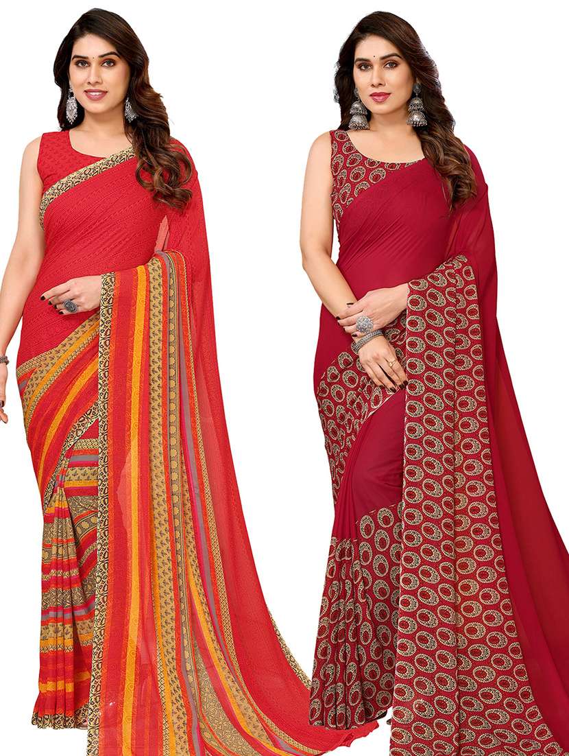 women pack of 2 casual wear combo sarees with blouse