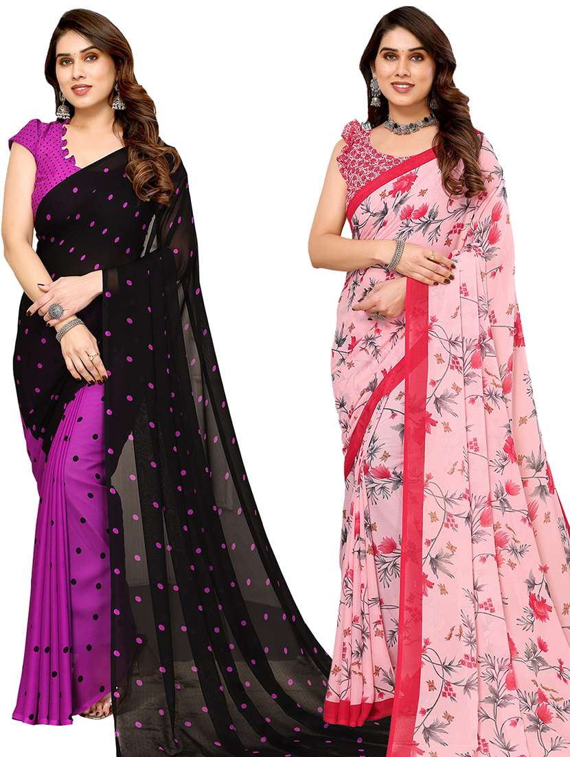 women pack of 2 casual wear combo sarees with blouse - 21434243 - Very Small Image - 1