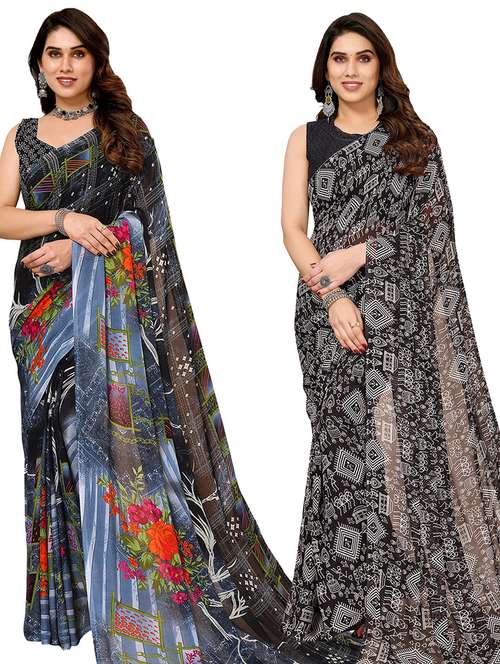 women pack of 2 casual wear combo sarees with blouse - 21434248 - Very Small Image - 1