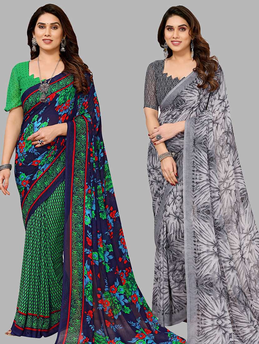 women pack of 2 casual wear combo sarees with blouse