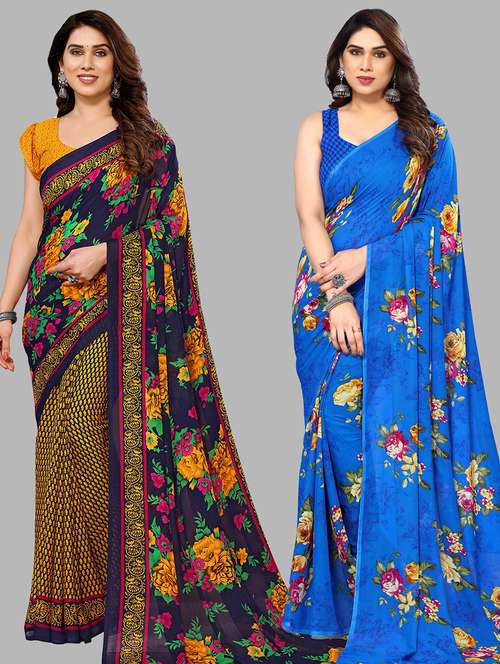 women pack of 2 casual wear combo sarees with blouse - 21434290 - Very Small Image - 1