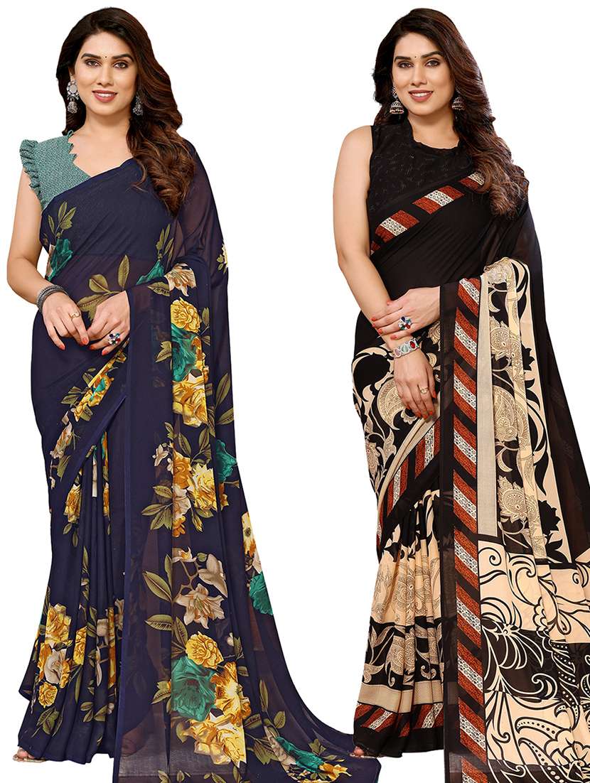 women pack of 2 casual wear combo sarees with blouse - 21434312 - Very Small Image - 1