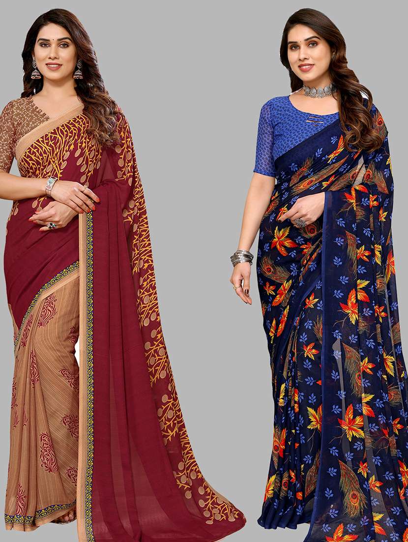 women pack of 2 casual wear combo sarees with blouse