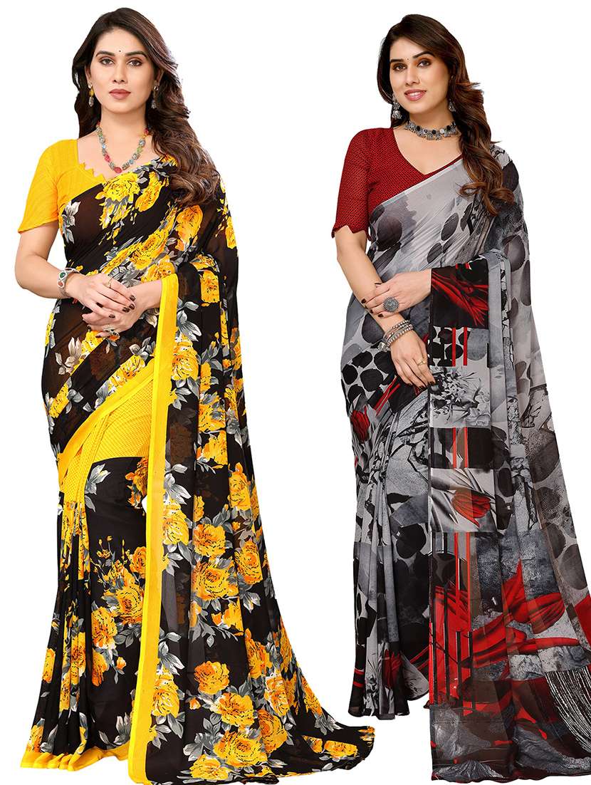 women pack of 2 casual wear combo sarees with blouse