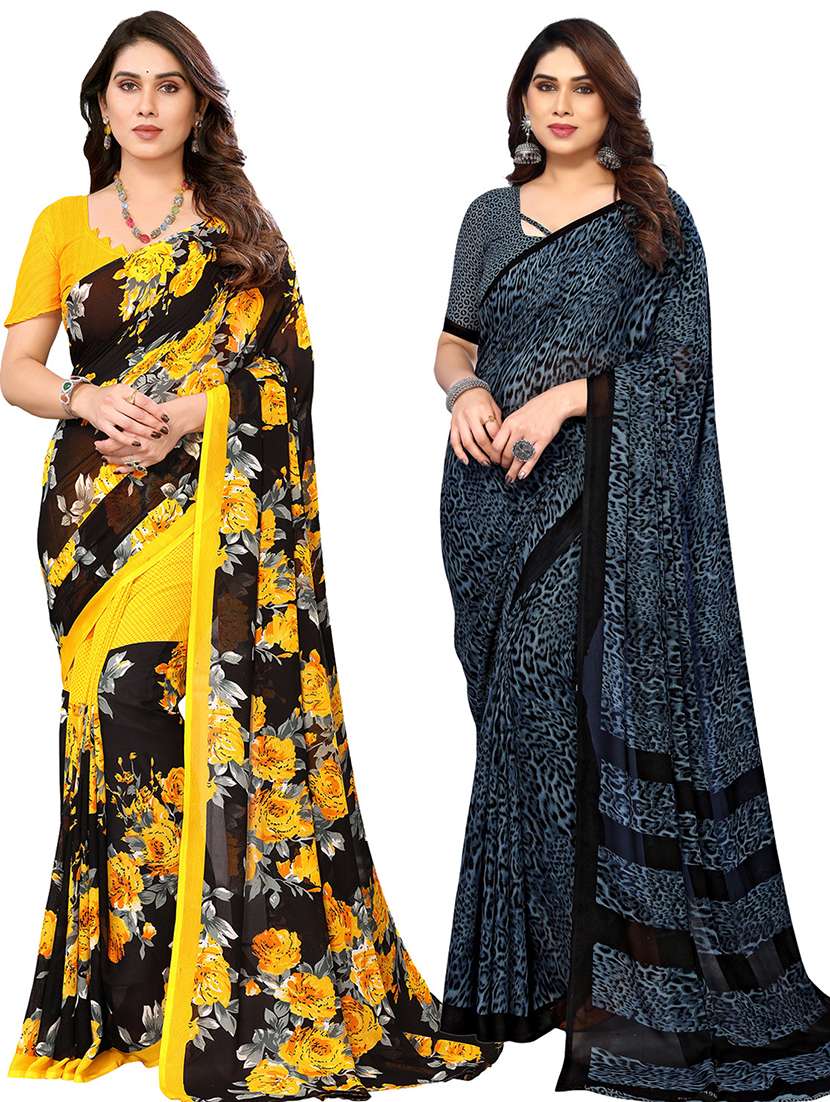 women pack of 2 casual wear combo sarees with blouse - 21434468 - Very Small Image - 1