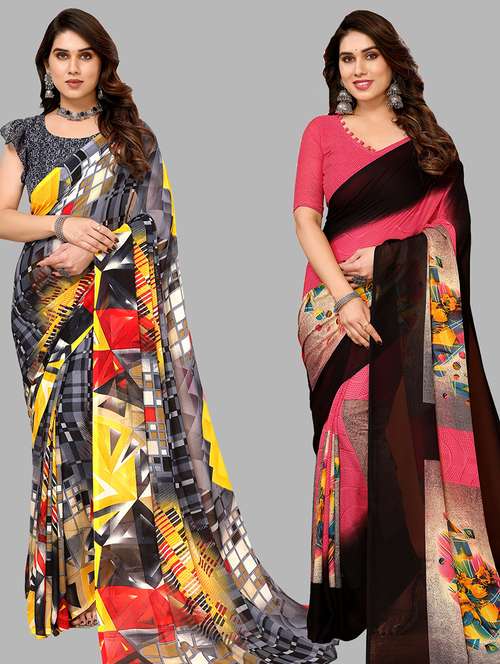 women pack of 2 casual wear combo saree with blouse - 21434657 - Very Small Image - 1
