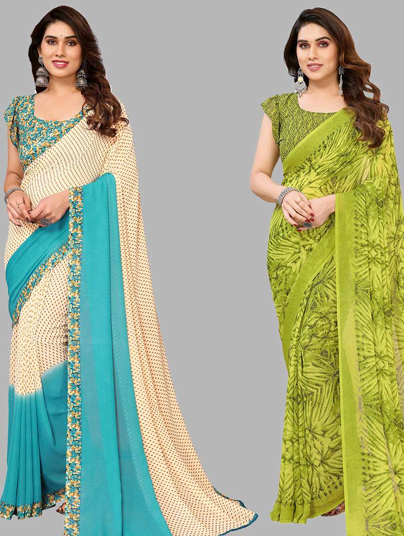women pack of 2 casual wear combo sarees with blouse