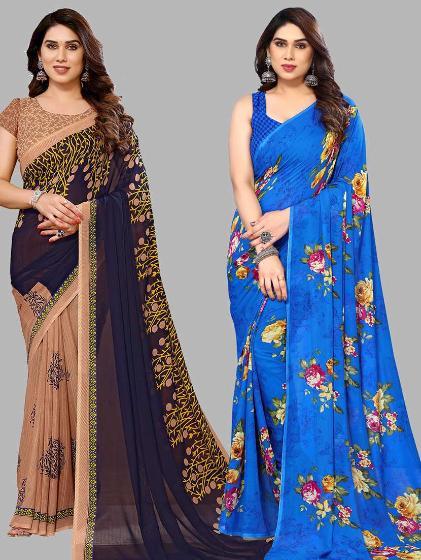 women pack of 2 casual wear combo sarees with blouse