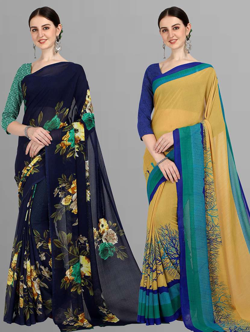 women pack of 2 casual wear combo sarees with blouse - 21434848 - Very Small Image - 1