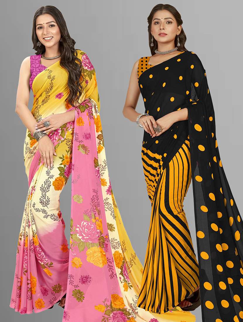 women pack of 2 casual wear combo sarees with blouse