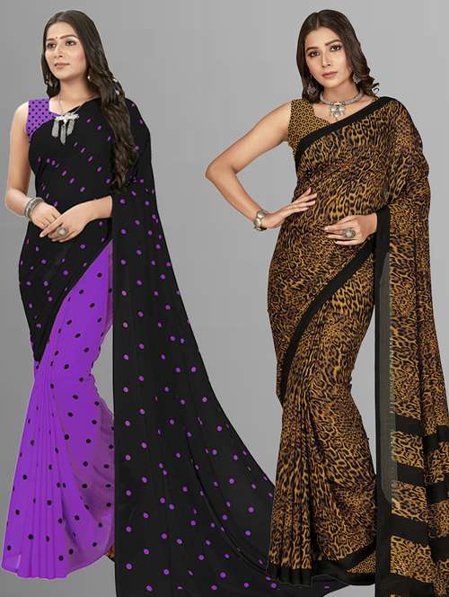 women pack of 2 casual wear combo sarees with blouse - 21434866 - Very Small Image - 1