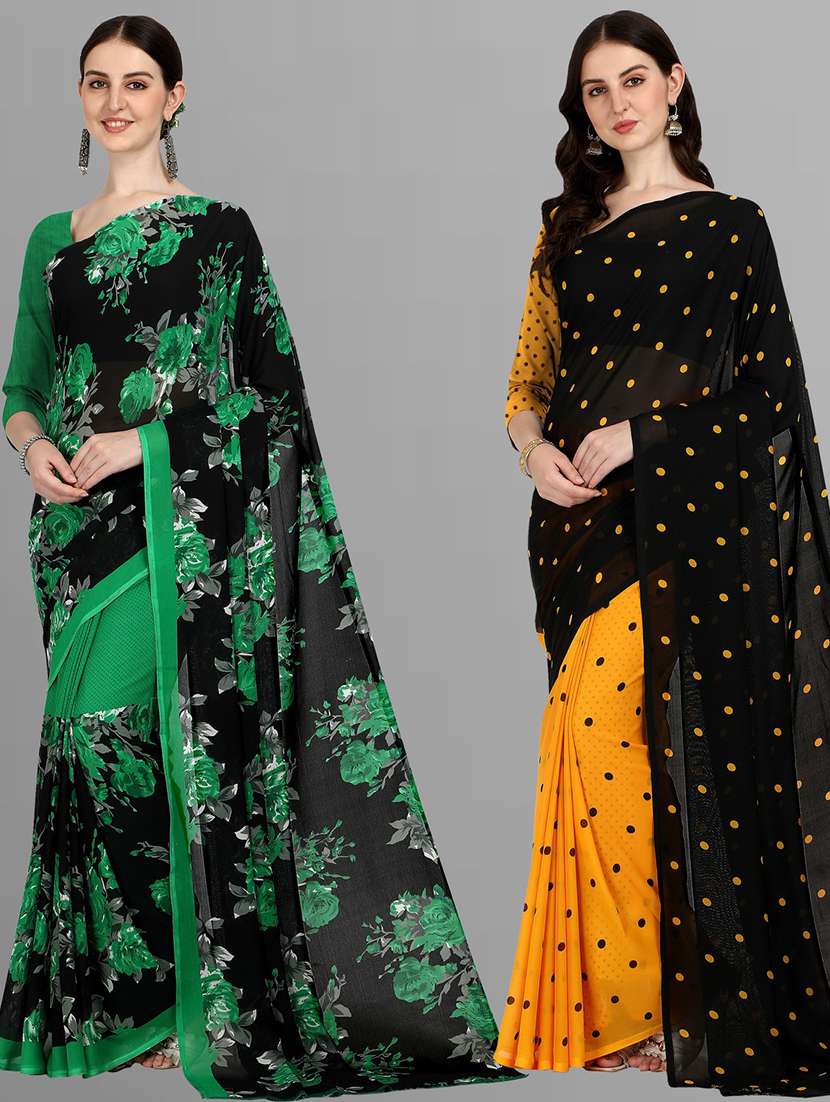 women pack of 2 casual wear combo sarees with blouse