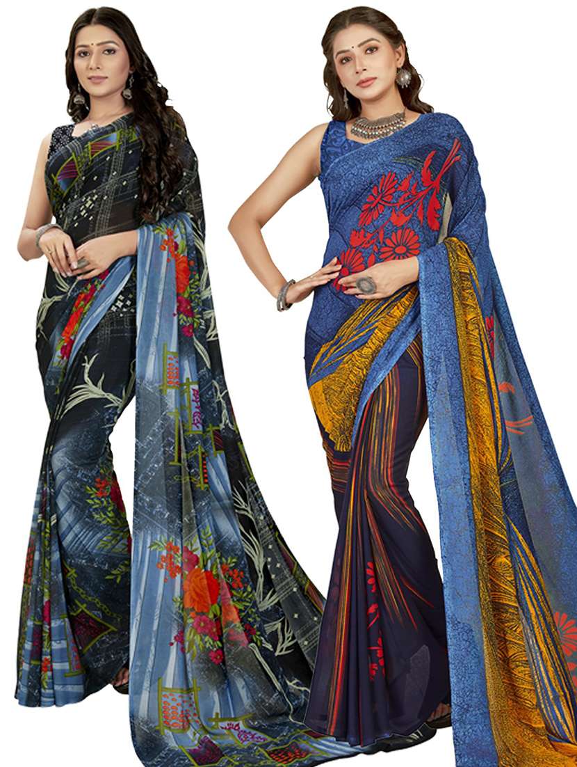 women pack of 2 casual wear combo sarees with blouse