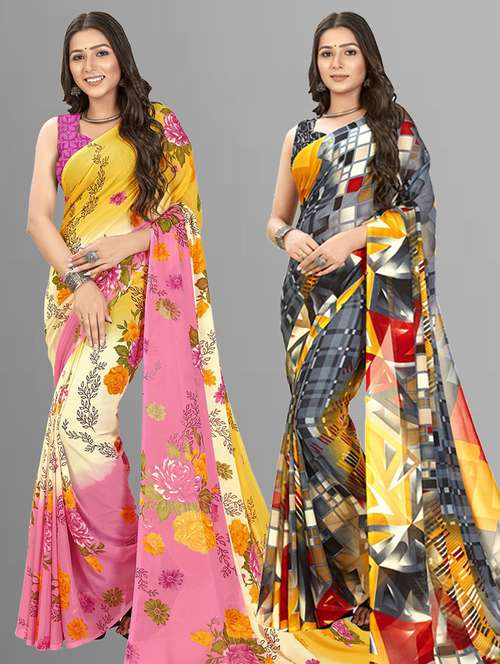 women pack of 2 casual wear combo sarees with blouse - 21434916 - Very Small Image - 1