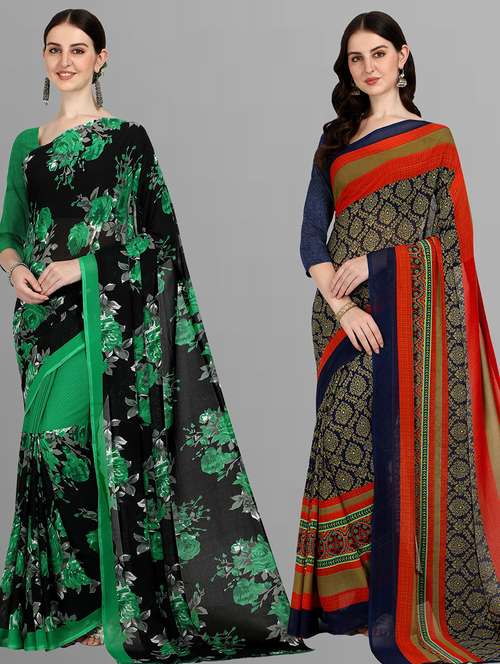 women pack of 2 casual wear sarees with blouse