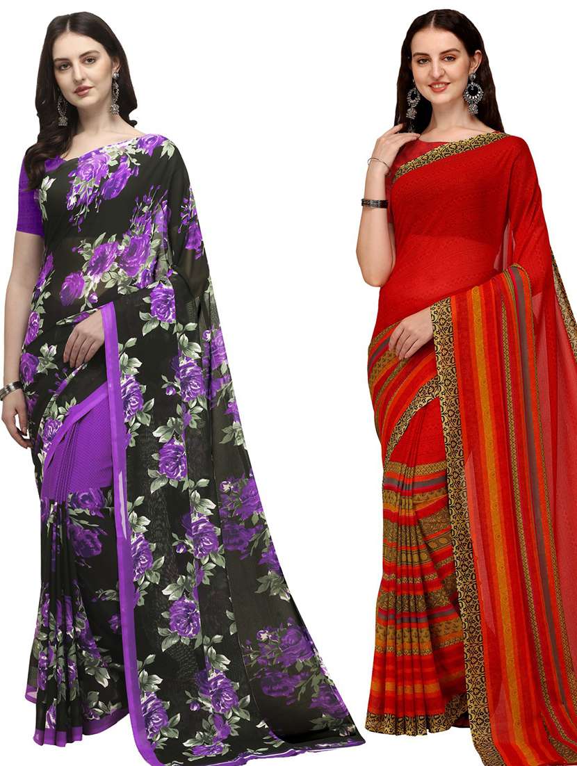 women pack of 2 casual wear combo sarees with blouse