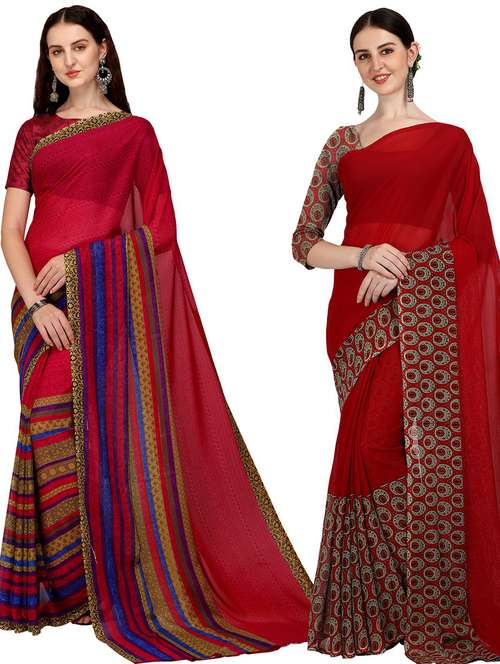 women pack of 2 casual wear combo sarees with blouse - 21435399 - Very Small Image - 1