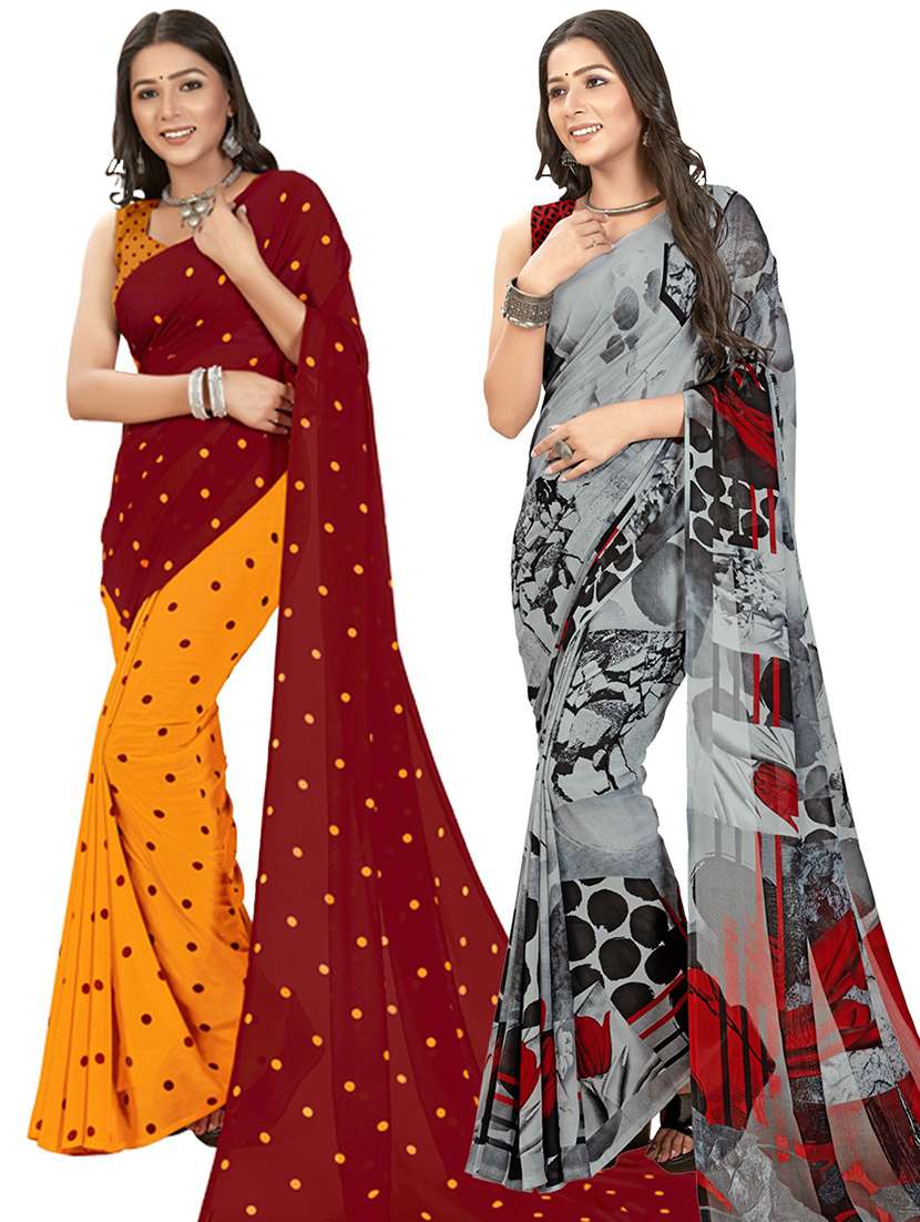 women pack of 2 casual wear combo sarees with blouse - 21435531 - Very Small Image - 1