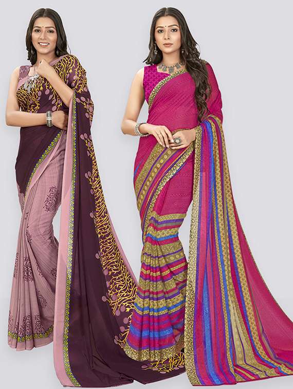 pack of 2 printed casual wear sarees - 21435606 - Very Small Image - 1