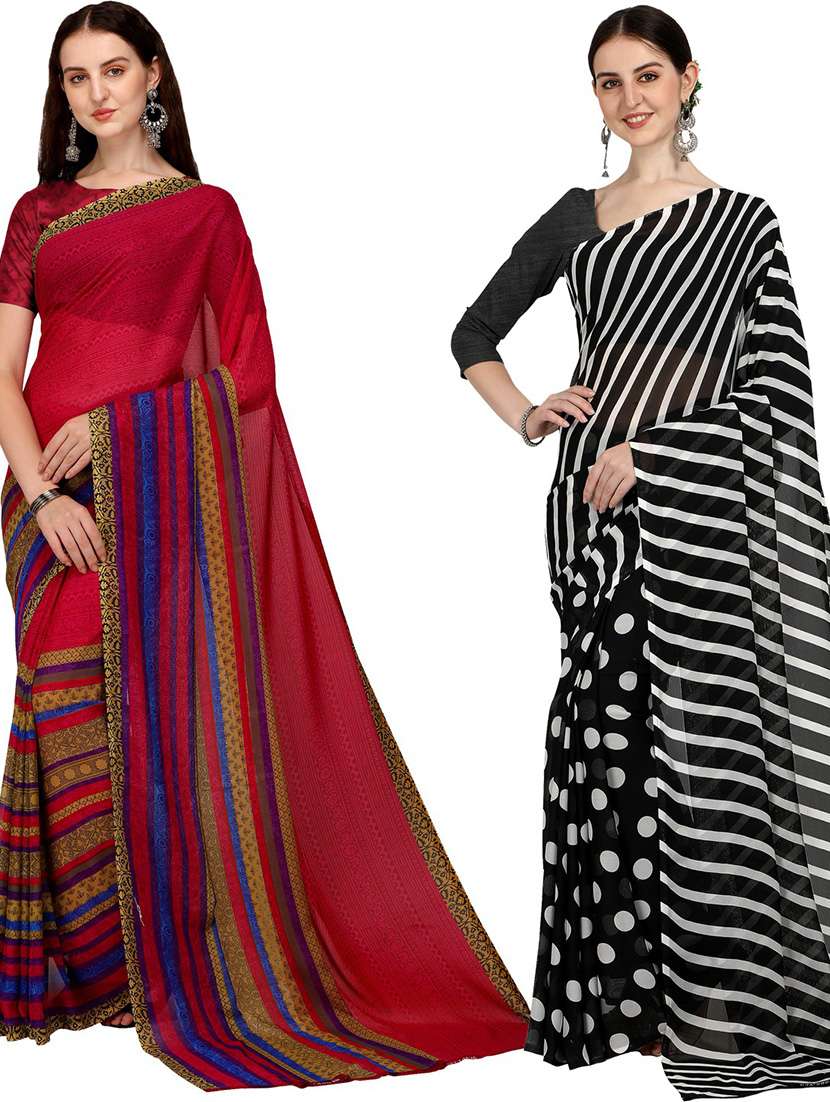 pack of 2 printed casual wear sarees with blouse - 21435716 - Very Small Image - 1