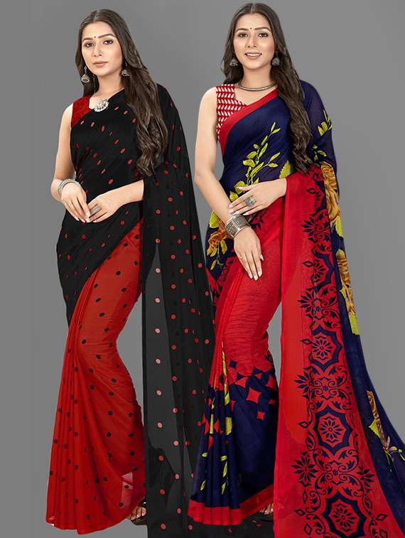 pack of 2 printed sarees with blouse - 21435763 - Very Small Image - 1