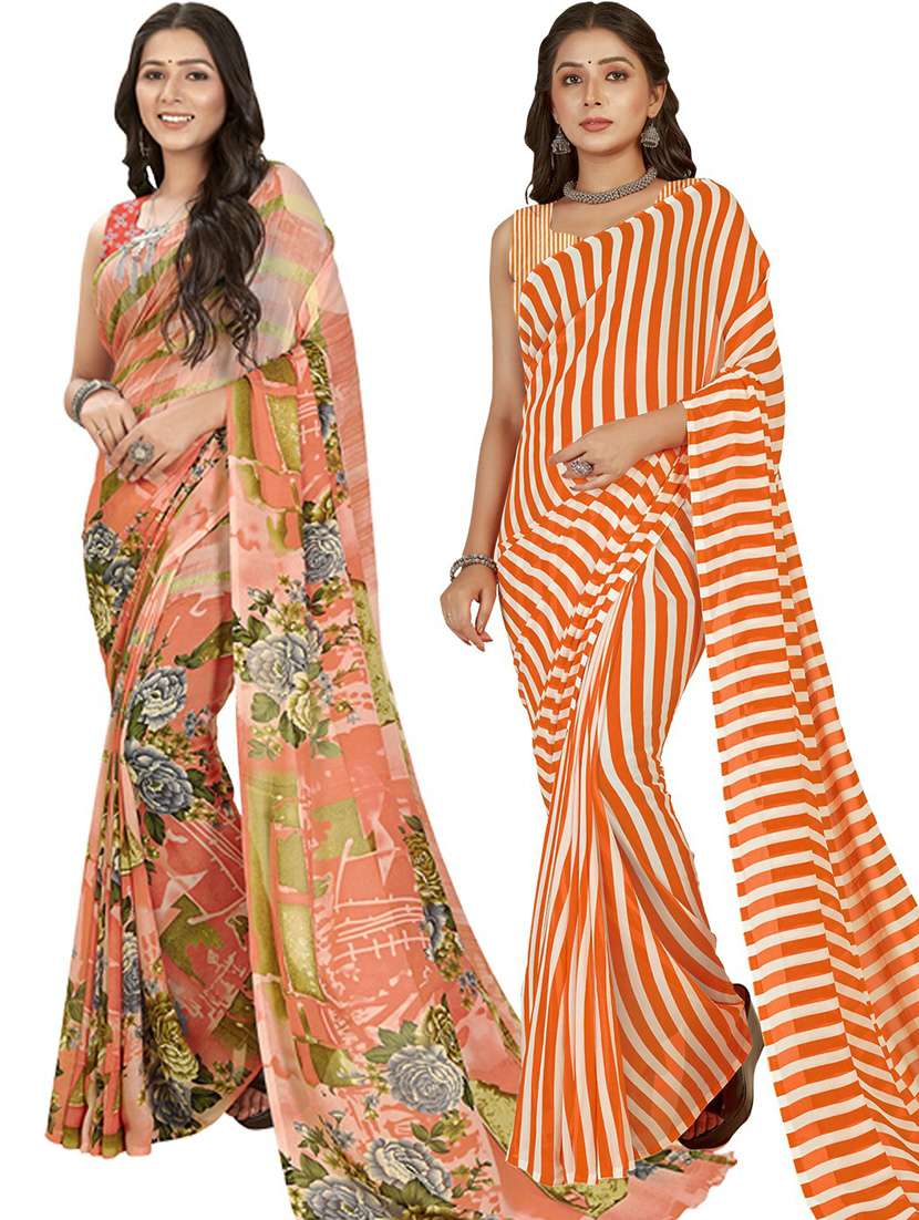 pack of 2 printed casual wear sarees with blouse