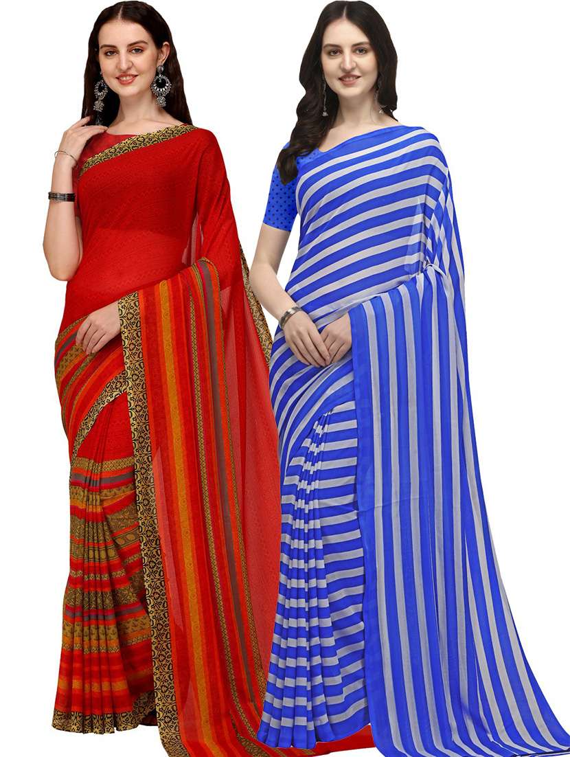 pack of 2 casual wear combo sarees with blouse - 21435771 - Very Small Image - 1