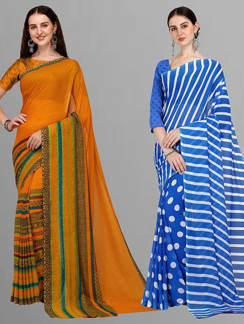 pack of 2 printed casual wear saree with blouse