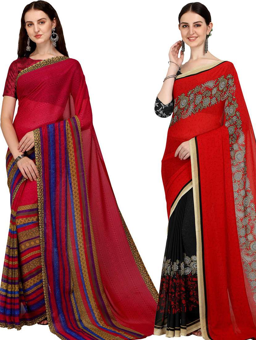 pack of 2 women printed sarees with blouse