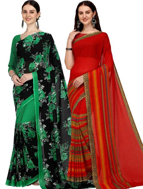 women pack of 2 casual wear sarees with blouse - 21435953 - Very Small Image - 1