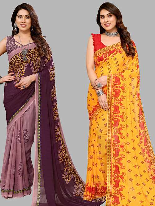pack of 2 printed casual wear sarees - 21439702 - Very Small Image - 1